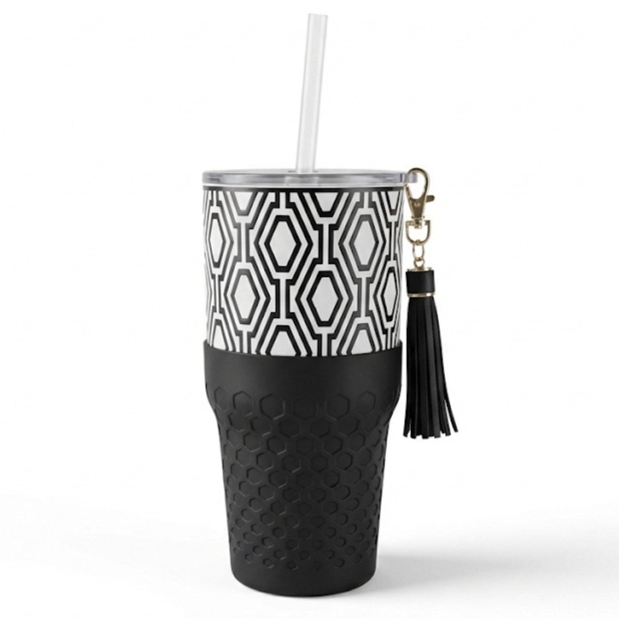 The honeycomb-textured silicone boot keeps your tumbler stable, scratch-free, and effortlessly chic wherever you set it down.