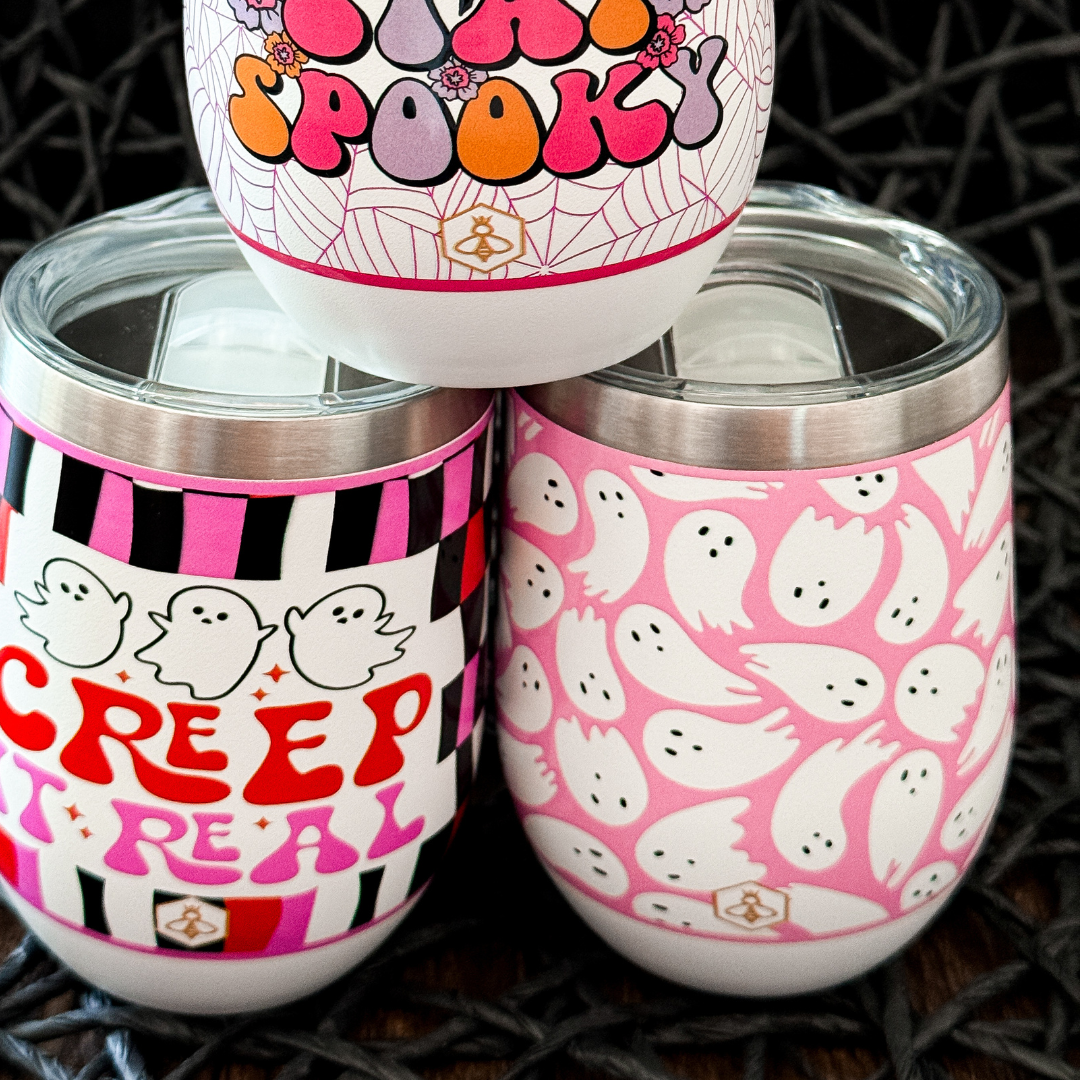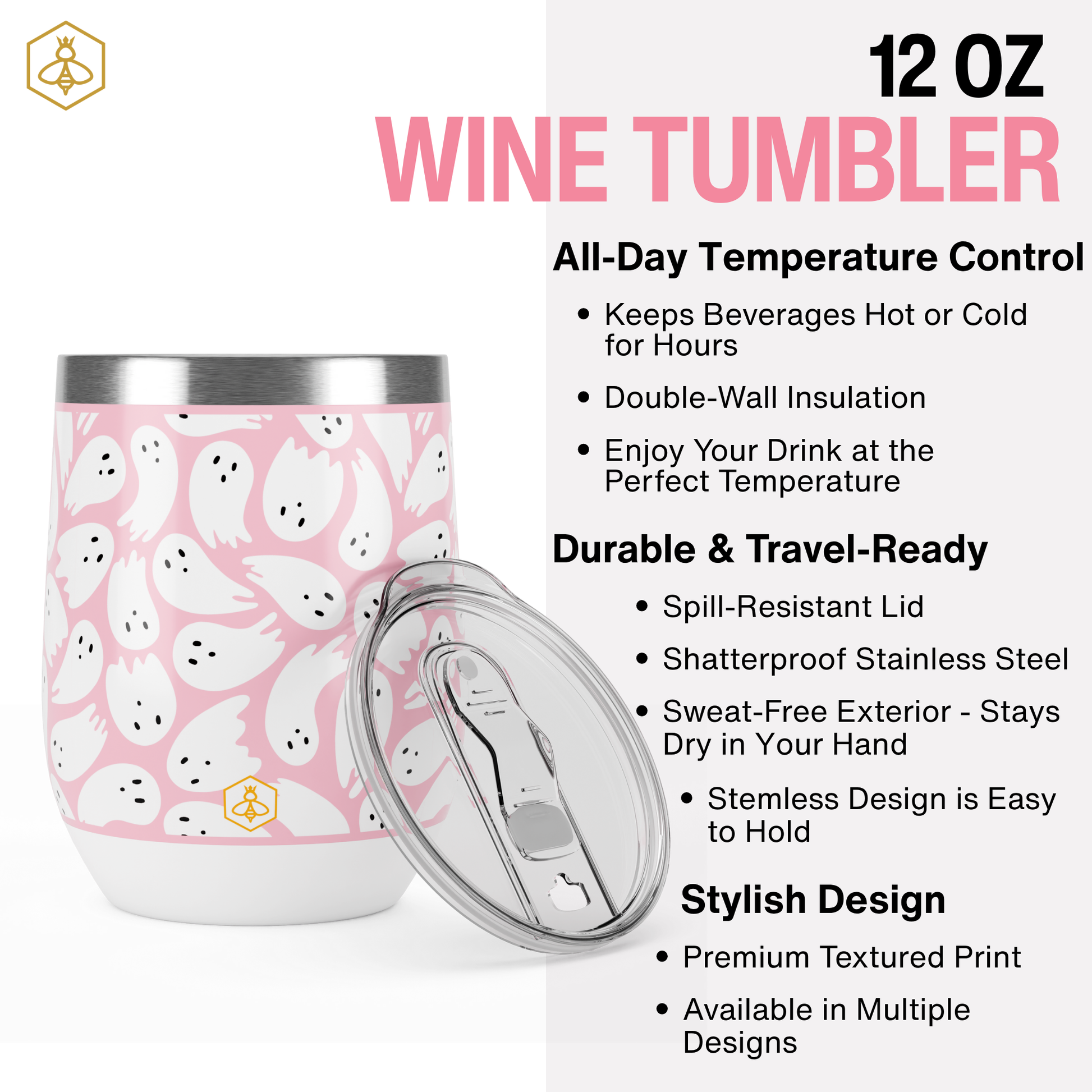 Covered in a crowd of cute little spooks and a perfect pastel pink, this tumbler screams “Halloween, but make it adorable.” It’s double-walled, vacuum-sealed, and ready to haunt your wine, cider, or pumpkin spice cocktail in style.